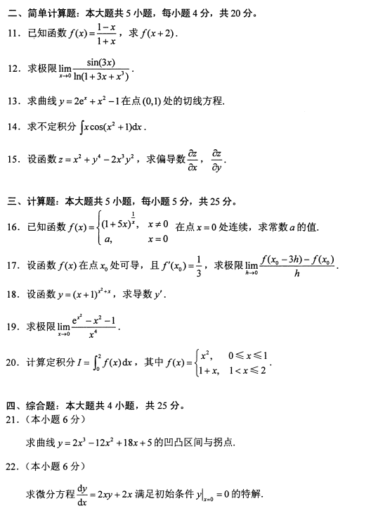 所在位置:上海自考 > 自考試卷> 2018年4月上海自考高等數學(一)考試試題